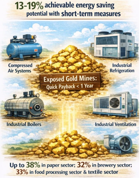 Doanh nghiệp có thể đạt mức tiết kiệm năng lượng từ 13%-19% cho bốn hệ thống công nghệ kể trên chỉ bằng cách áp dụng các giải pháp ngắn hạn, như khắc phục rò rỉ hoặc tối ưu hóa áp suất.